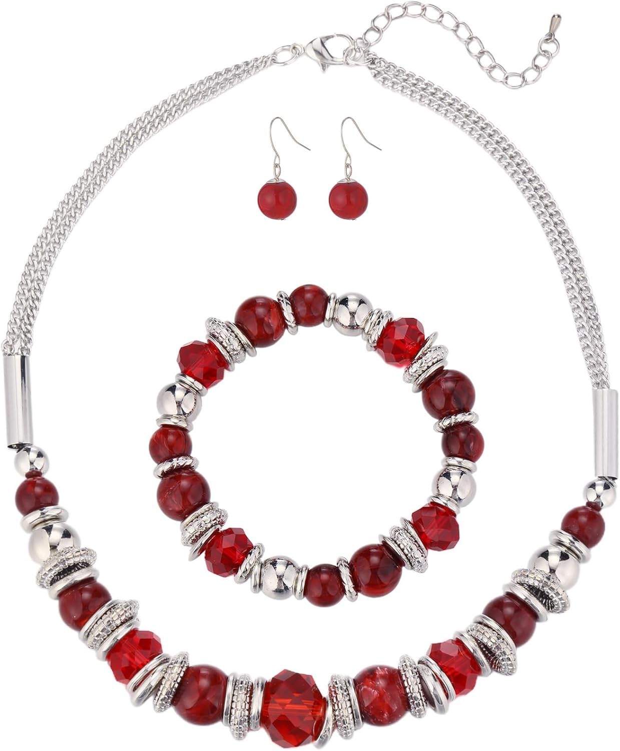 PEARL&CLUB Silver Beaded Statement Necklaces for Women Chunky Bead Necklace Bracelet and Earring Costume Jewelry Sets Gifts for Mom