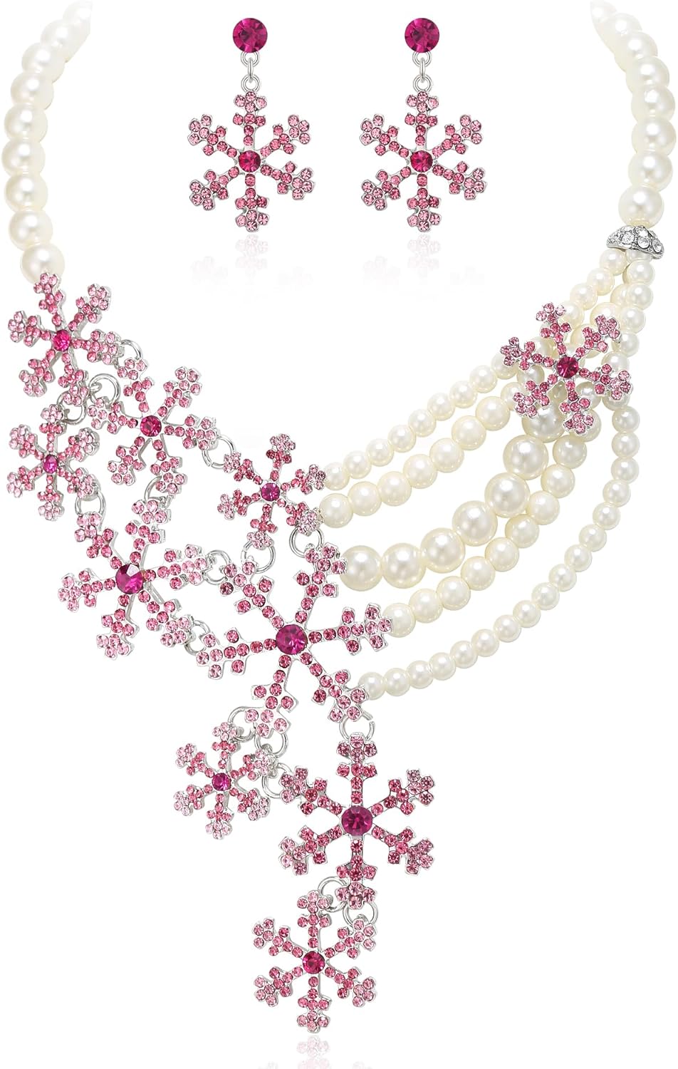 EVER FAITH Snowflake Simulated Pearl Austrian Crystal Necklace Earrings Set