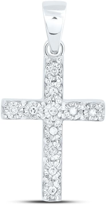 Jewels By Lux Sterling Silver White-Tone 1/20 Ctw Natural Diamond Cross Pendant