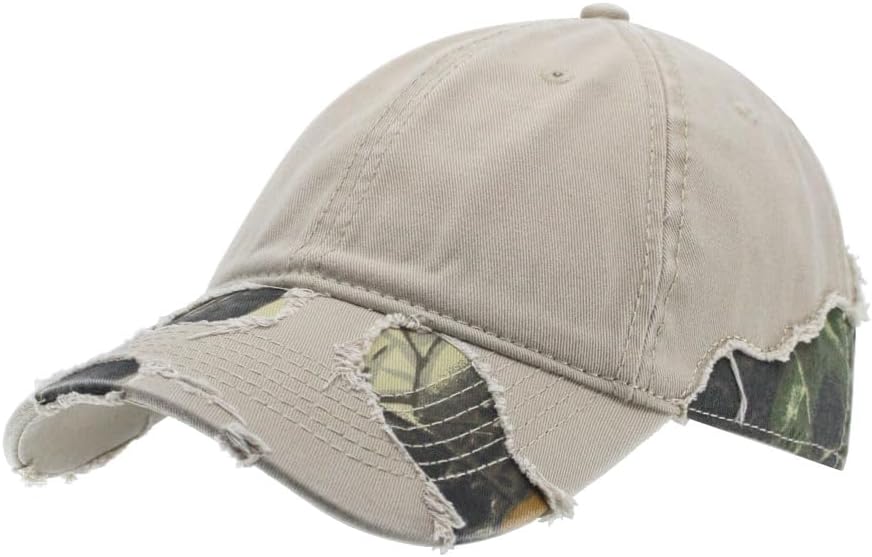 The Vintage Year Camouflage Washed Cotton Twill Distressed Visor Low Profile Adjustable Baseball Cap