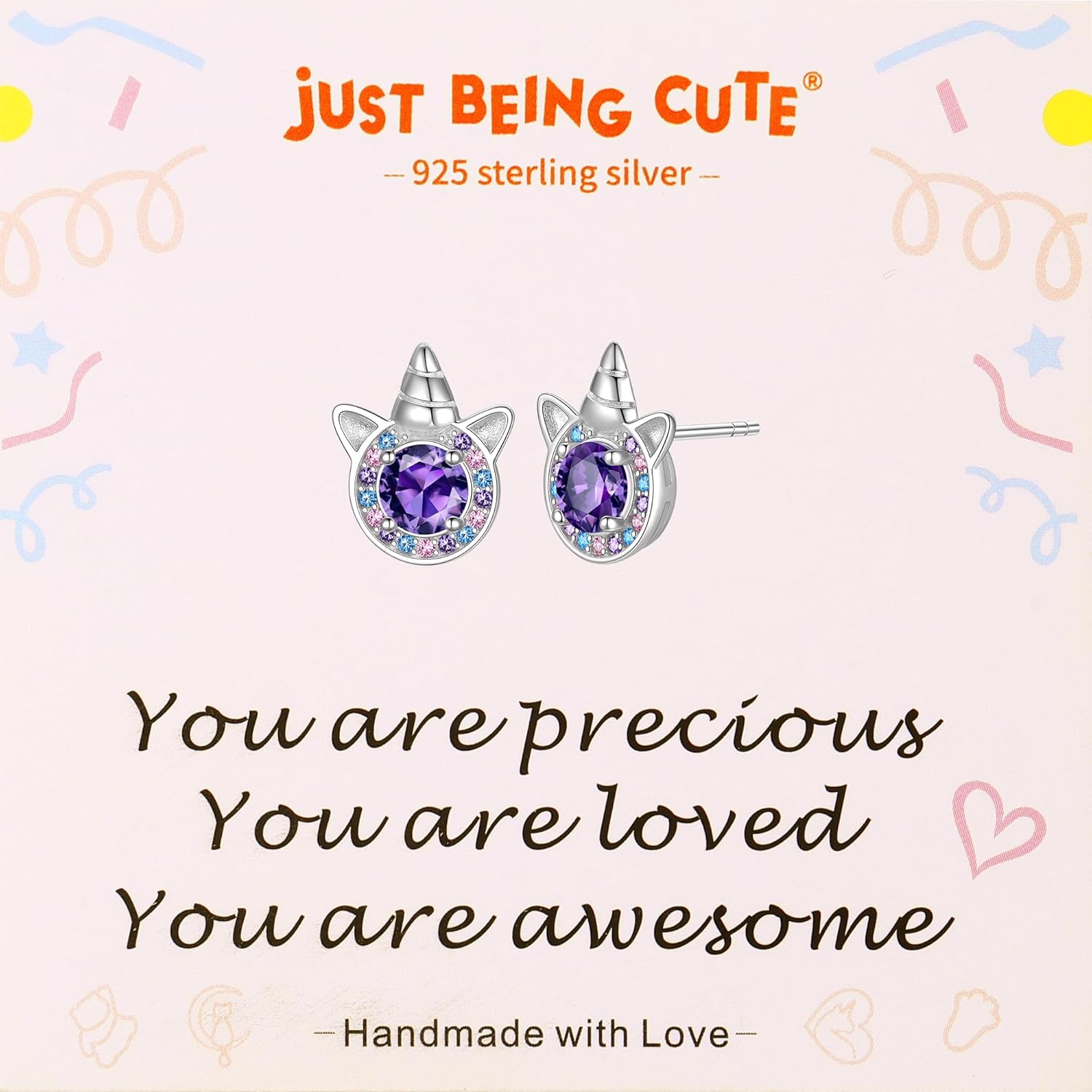 Birthstone Earrings for Girls, 925 Sterling Silver Stud Earrings for Women, Unicorn Gifts for Girls, Cubic Zirconia Studs Earrings, Unicorn Birthday Christmas Gifts for Teens Women