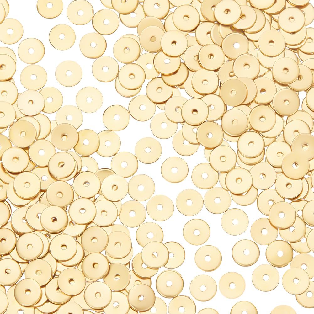 UNICRAFTALE 500Pcs Real 18K Gold Plated Spacer Beads 6mm Flat Round Heishi Beads Brass Disc Beads Metal Beads Spacers Smooth Beads Finding for DIY Bracelet Necklace Jewelry Making