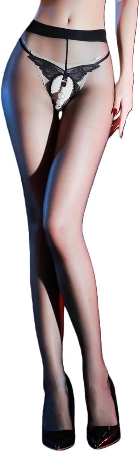 Women's Ultra Sheer Pantyhose Matte Sheer Tights High Elastic Control Top Pantyhose Detachable Pearl Strap