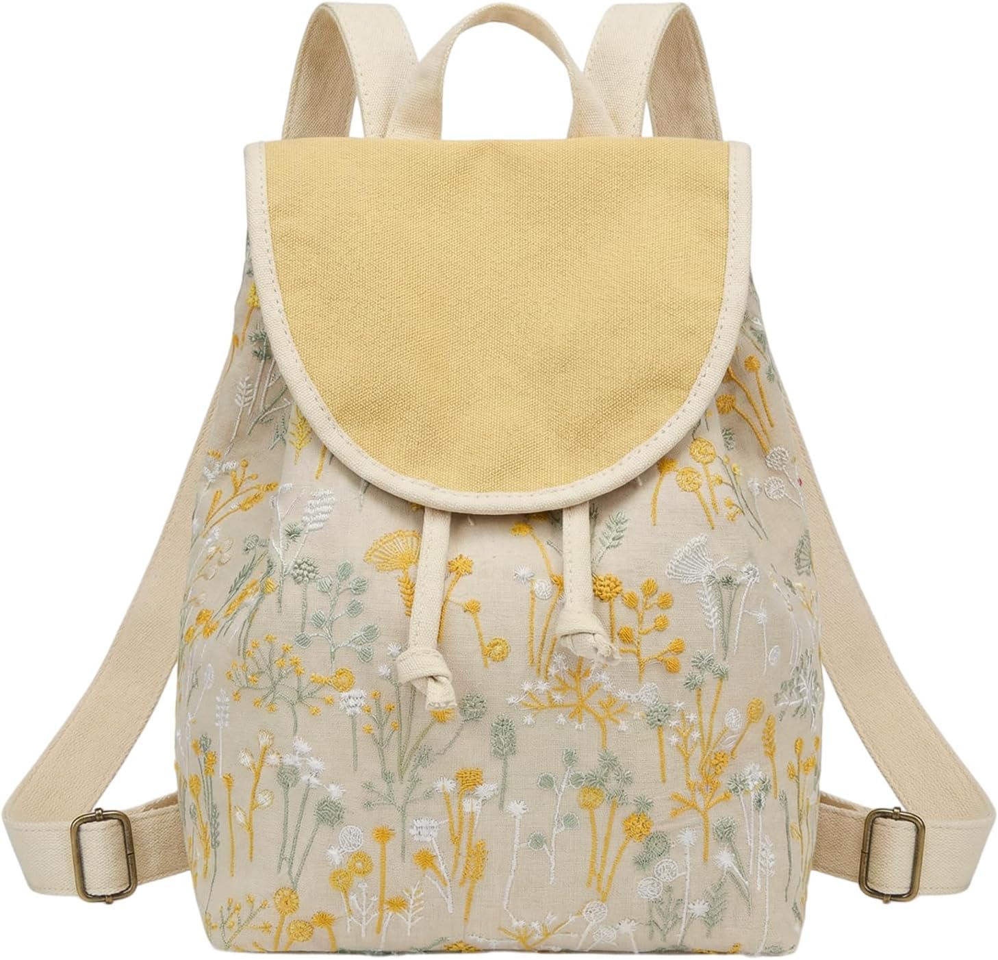 Goodhan Vintage Embroidered Backpack Purses for Women - Boho Shoulder Bag for Travel,Ethnic Floral Mini Back Pack,Lightweight Handbags for Daily Use (Yellow)