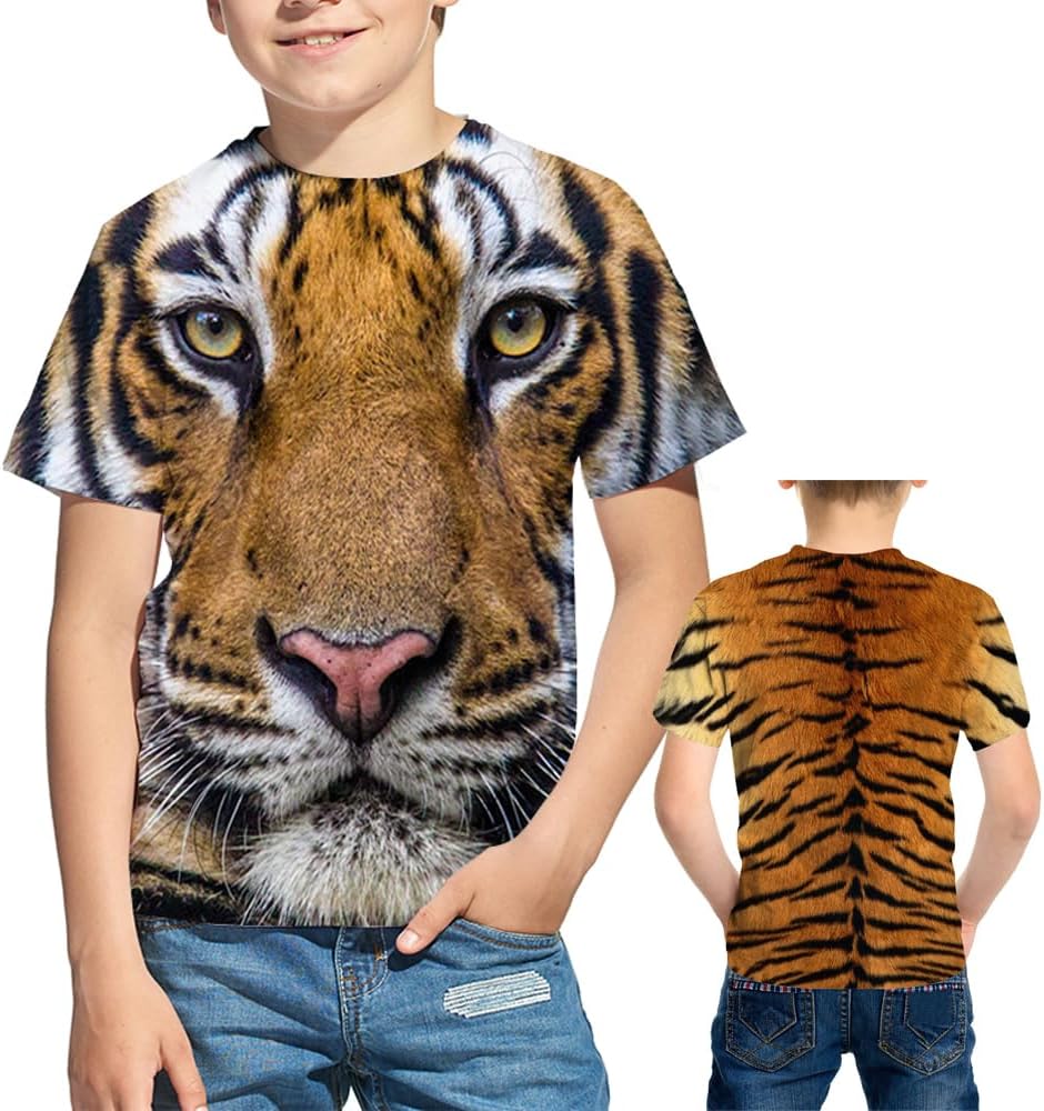 Kids 3D Print Graphic Tees Funny Tiger Short Sleeve T Shirts for Youth Boys Girls 4-14 Years