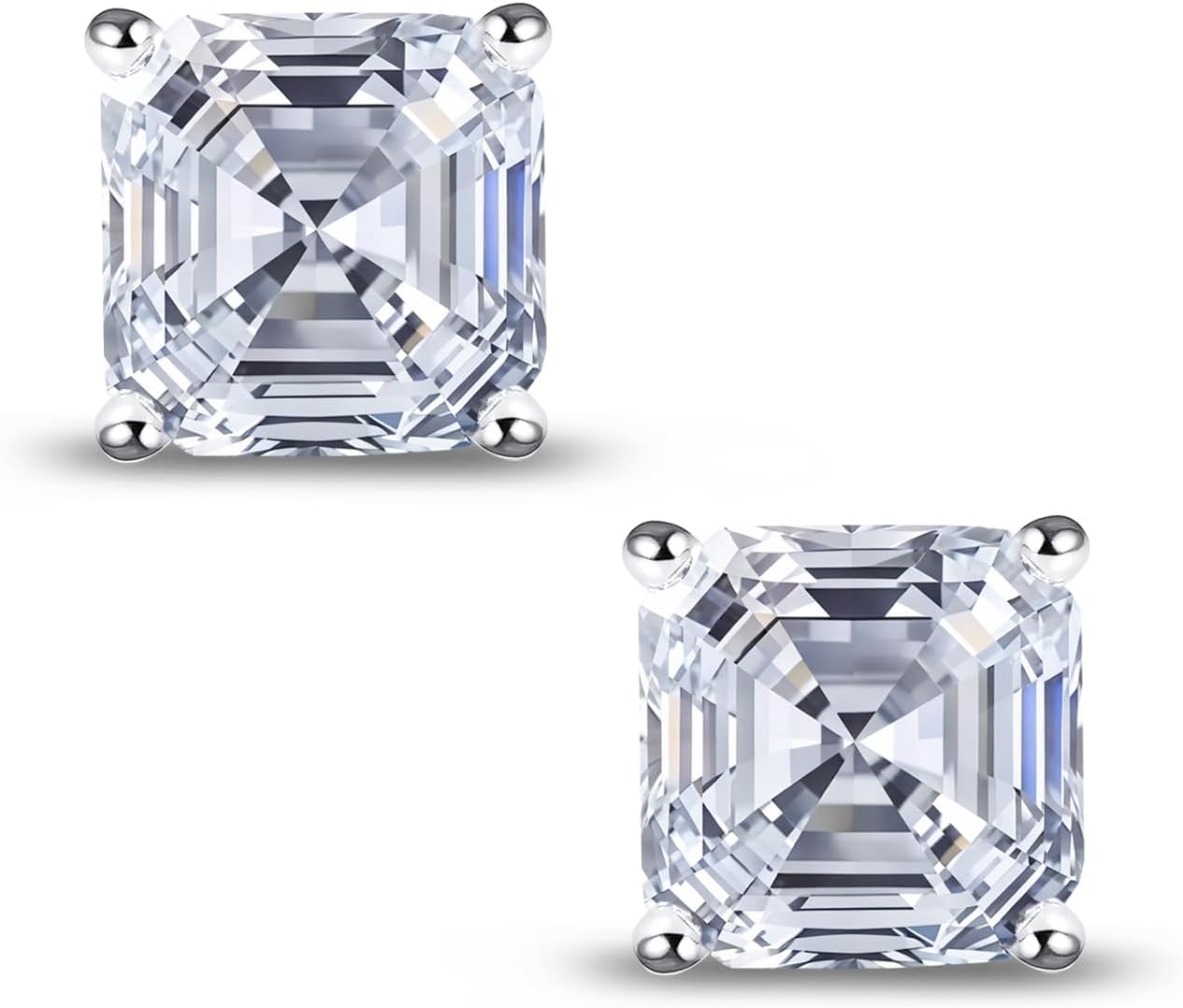 "STUNNING FLAME "18K Gold Plated Sterling Silver Asscher Cut Cubic Zirconia Stud Earrings for Women