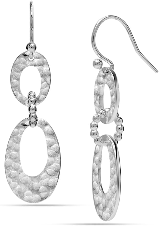 LeCalla 925 Sterling Silver Drop & Dangle Earrings for Women | Handmade Hammered Textured Drop Dangle Earring Jewelry | Women's Hammered Earrings Jewelry for Gift Mom Wife