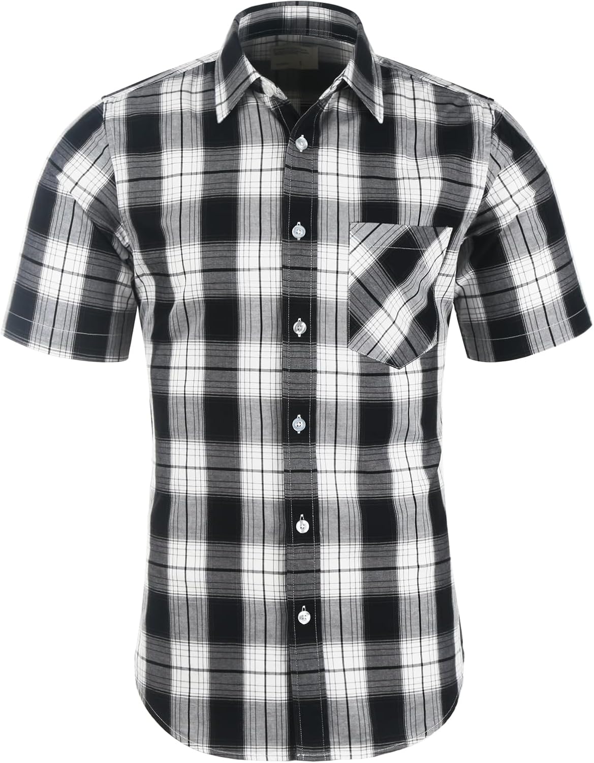 NUTEXROL Men's Plaid Button Down Short Sleeve Shirts 100% Cotton Casual Dress Regular Fit Shirt with Pocket