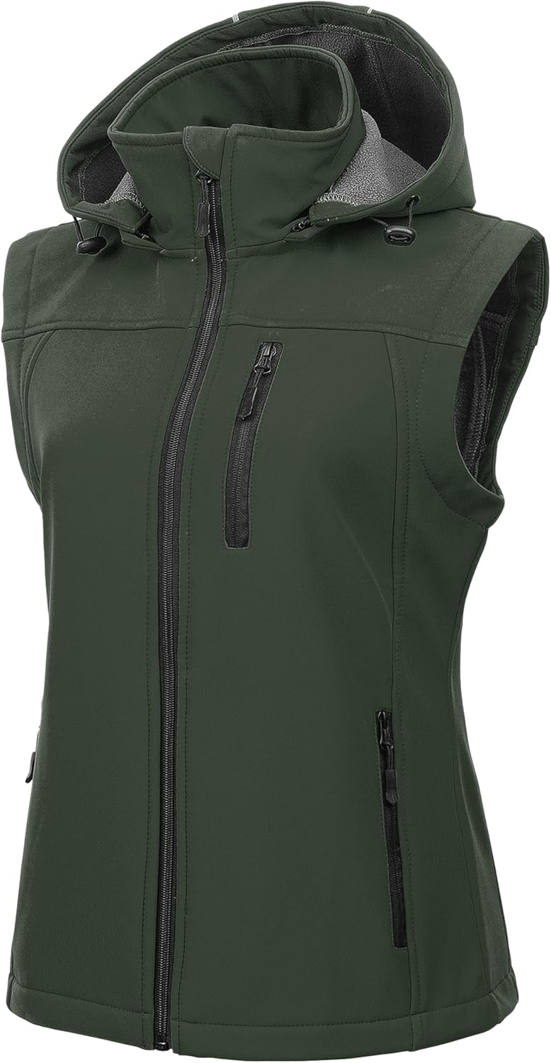 CREATMO US Women's Lightweight Softshell Vest Outerwear Windbreaker Sleeveless Jacket With Removable Hood