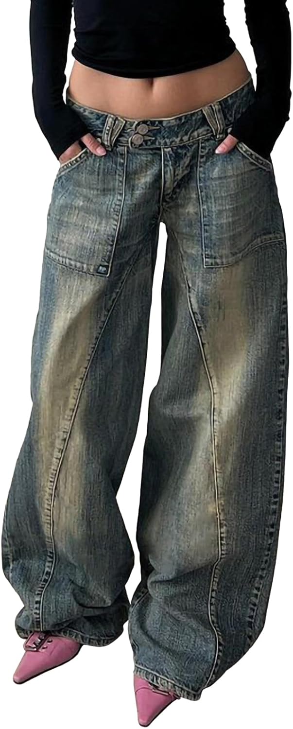 Women's Baggy Boyfriend Jeans Y2K Low Rise Vintage Wide Leg Jeans Teen Girls Streetwear Loose Fit Denim Pants