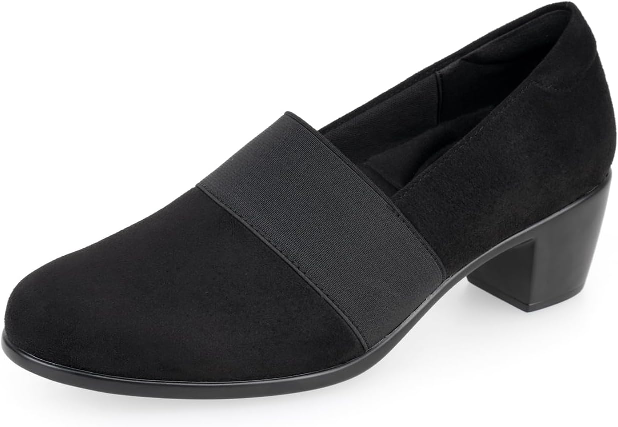 VJH confort Women’s Heeled Shoes, Comfortable Elastic Low Block Chunky Heels Pumps