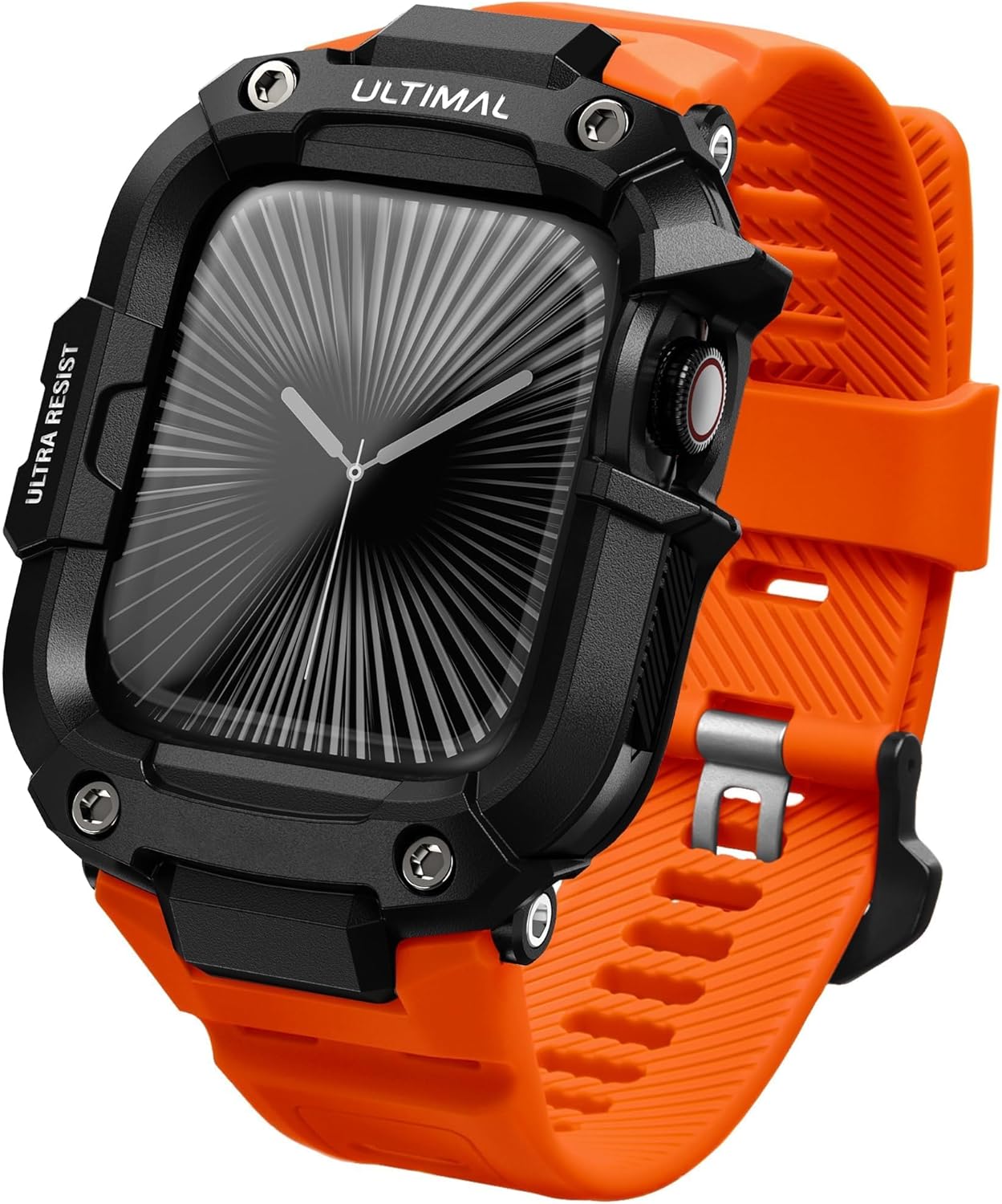 ULTIMAL Rugged Band with Case for Apple Watch 46mm, Military-Grade Shockproof Protective Strap for Men, All-in-One Outdoor Sport Watch Band Compatible with iWatch Series 11/10 (Orange)