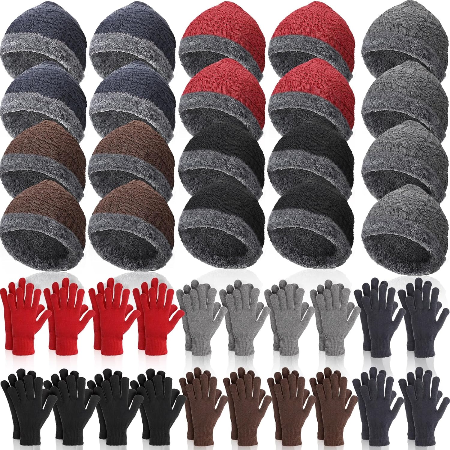 Suhine 40/110 Pcs Winter Hats and Gloves Bulk for Men Women Fleece Lined Beanie & Glove Set Unisex Hats Gloves for Homeless