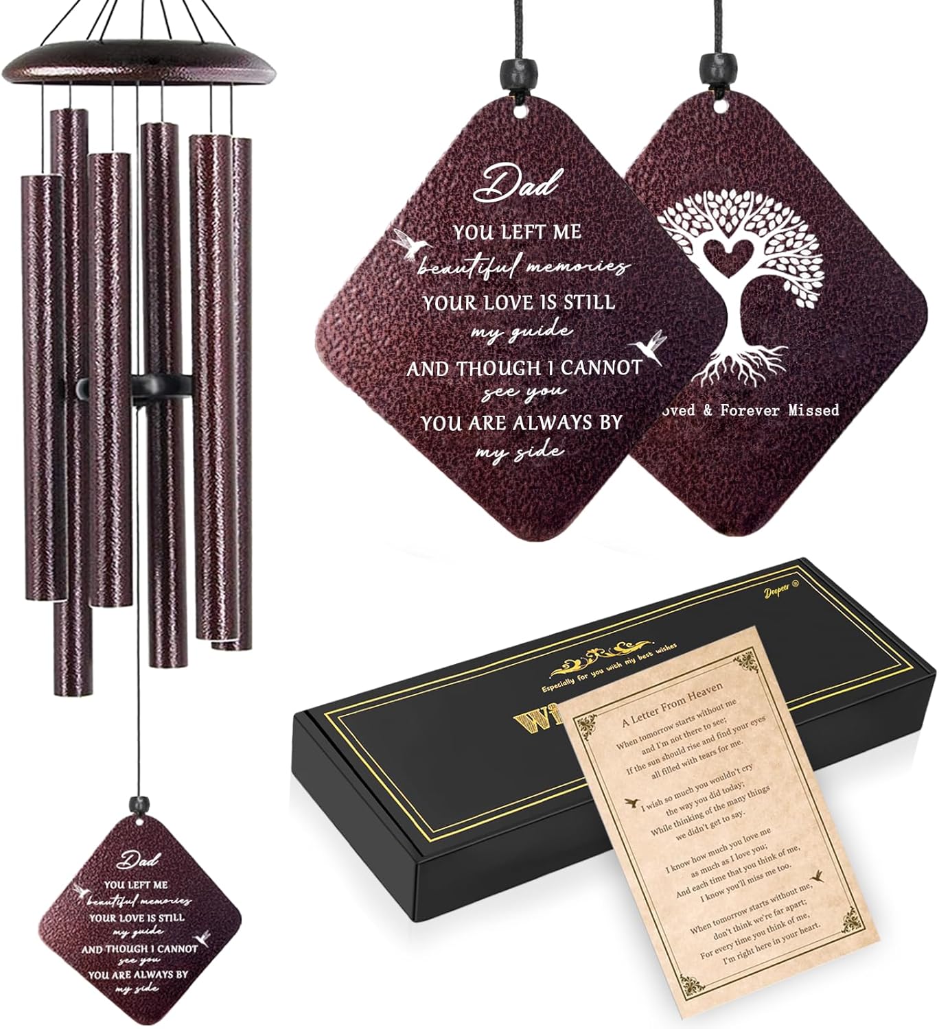 Sympathy Gifts for Loss of Dad, 32" Memorial Wind Chimes for Loss of Father, Memorial/Bereavement Gifts for Loss of Father, Loss of Father Sympathy Gift, in Memory of Dad Papa (Bronze)