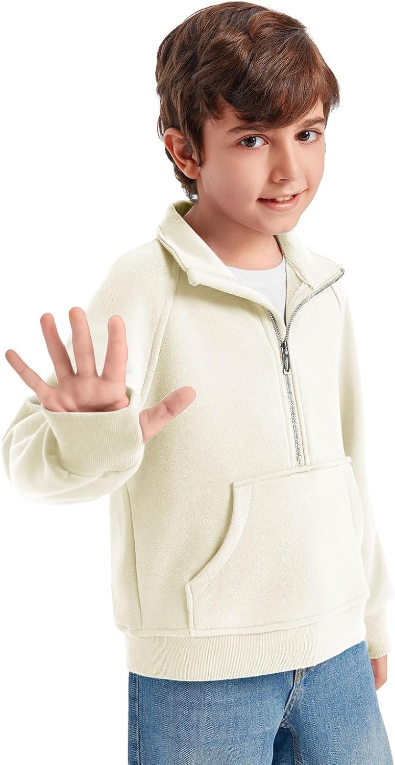 Haloumoning Boys Thumb Hole Sweatshirts Half Zipper Long Sleeve Fleece Pullover with Pockets 5-14 Years