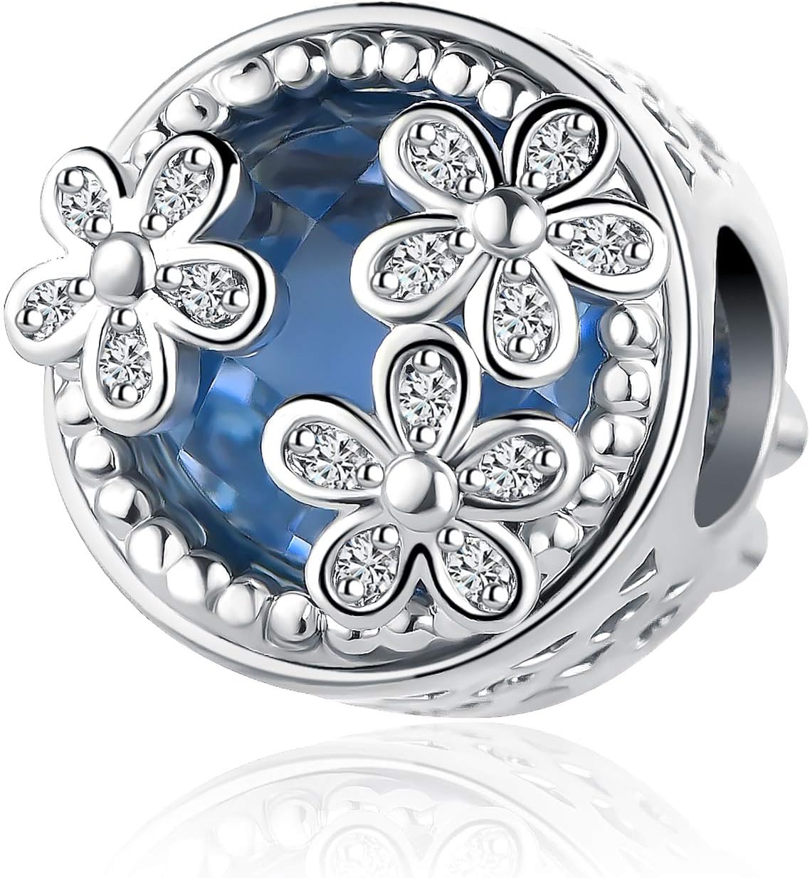 Sparkling Pink Blue Flower Charm Compatible with Pandora Bracelets Charms for Women Mother Daughter Sister Family Wife Jewelry Gifts