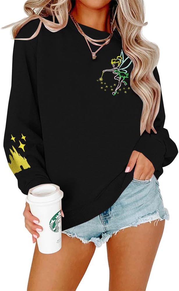 Magic Kingdom Sweatshirt Women Embroidered Princess Sweater Cute Fairy Shirt Family Vacation Castle Graphic Top