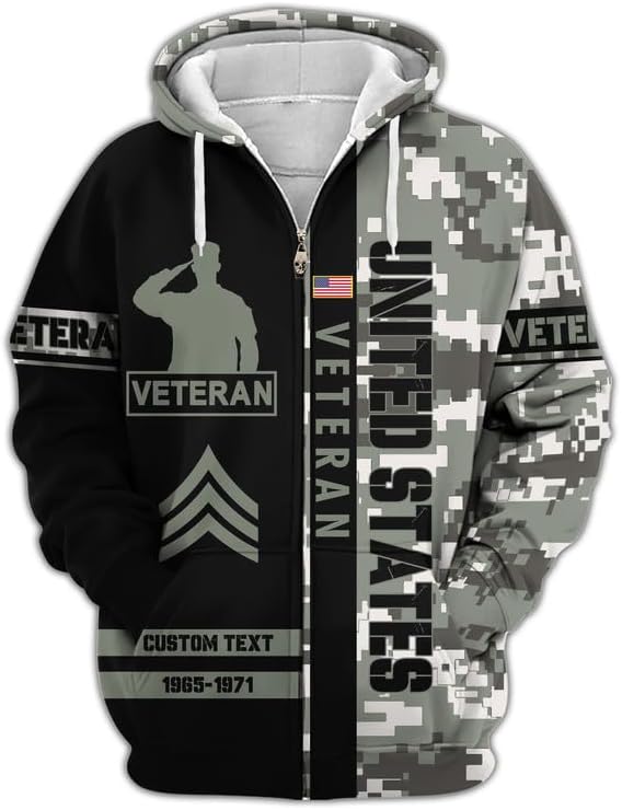 Personalized Veterans Day Hoodie - Men Military Hoodie, Patriotic Sweatshirts, Zip Hoodie For Vets, Veteran Day Gifts