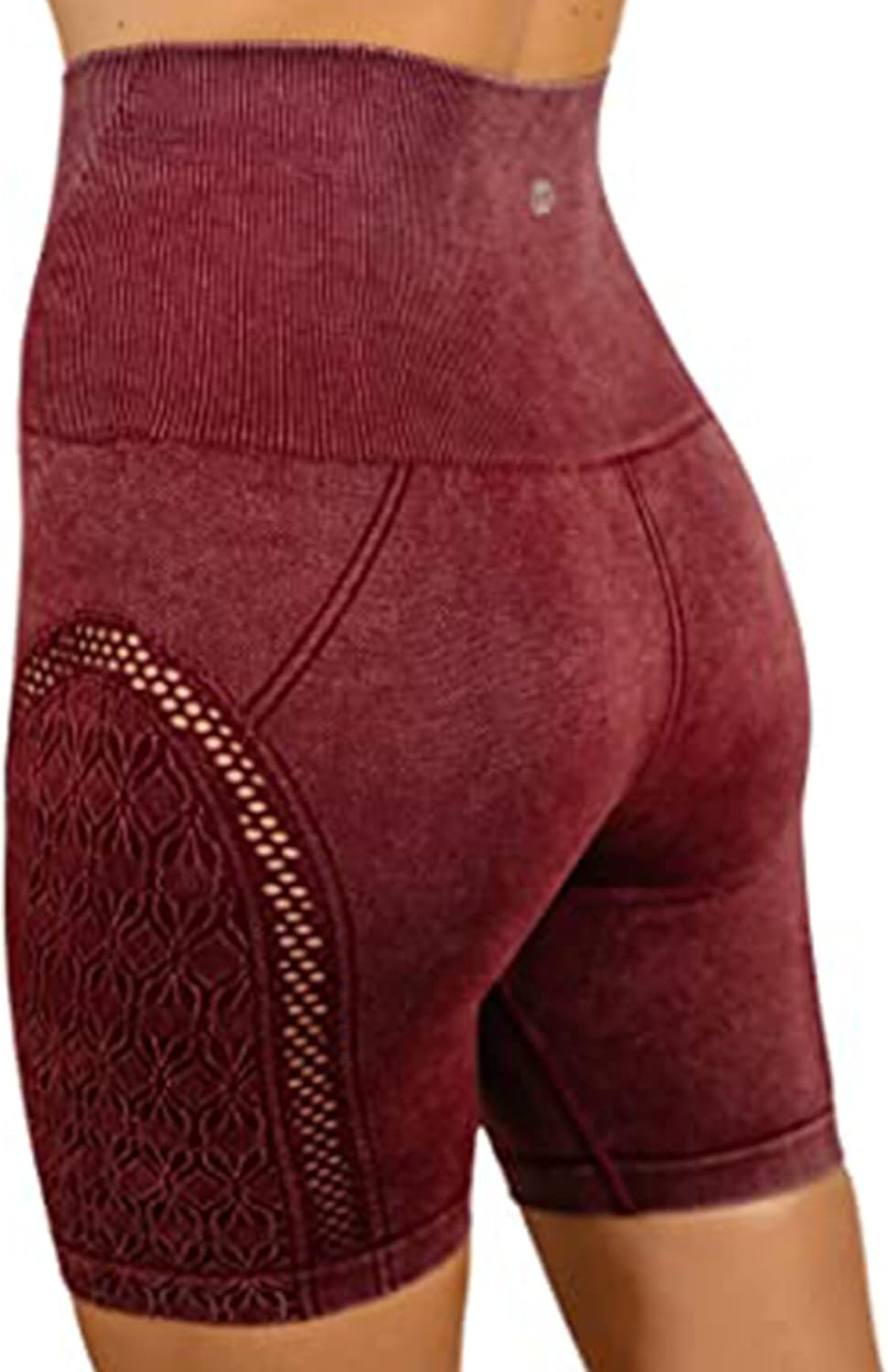 High Waisted Yoga Shorts Tummy Control - Biker shorts for Gym, Exercise, Workout, Running - Seamless, Acid Wash Red X-Small