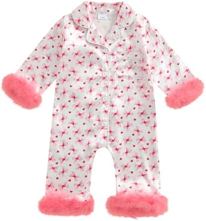 woshilaocai Baby Girl Button Down Romper Bow Strawberry Fuzzy Cuff Long Sleeve Jumpsuit Spring Summer Clothes