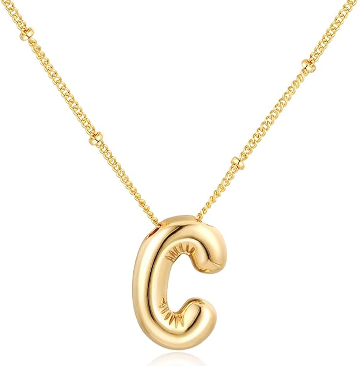 Balloon Letter Necklace Gold for Women, 18k Gold Plated Chain Pendant Charm Necklace, Initial Name Choker Jewelry Dainty Gold Puffy Necklace for Women