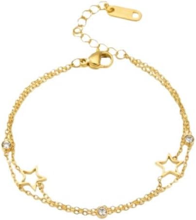 18K Gold Plated Star & Crystal Charm Bracelet for Women, Double Layer Adjustable Chain Bracelet, Fashion Dainty Jewelry Gifts for Women