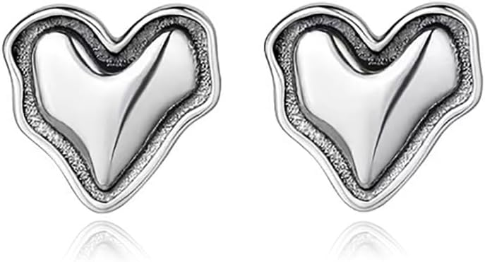 Love Heart Stud Earrings for Women Teens 925 Sterling Silver Retro Heart Stud Earrings Hypoallergenic