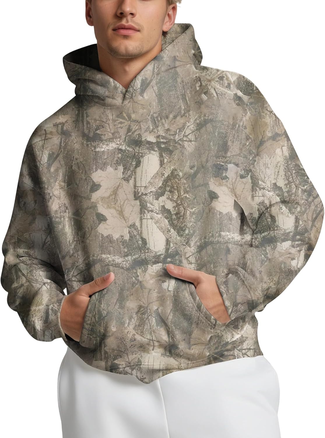 Men Camo Hoodie Maple Leaf Print Oversized Hooded Sweatshirt Fleece Pullover Sweatshirts Matching Couples Hoodies