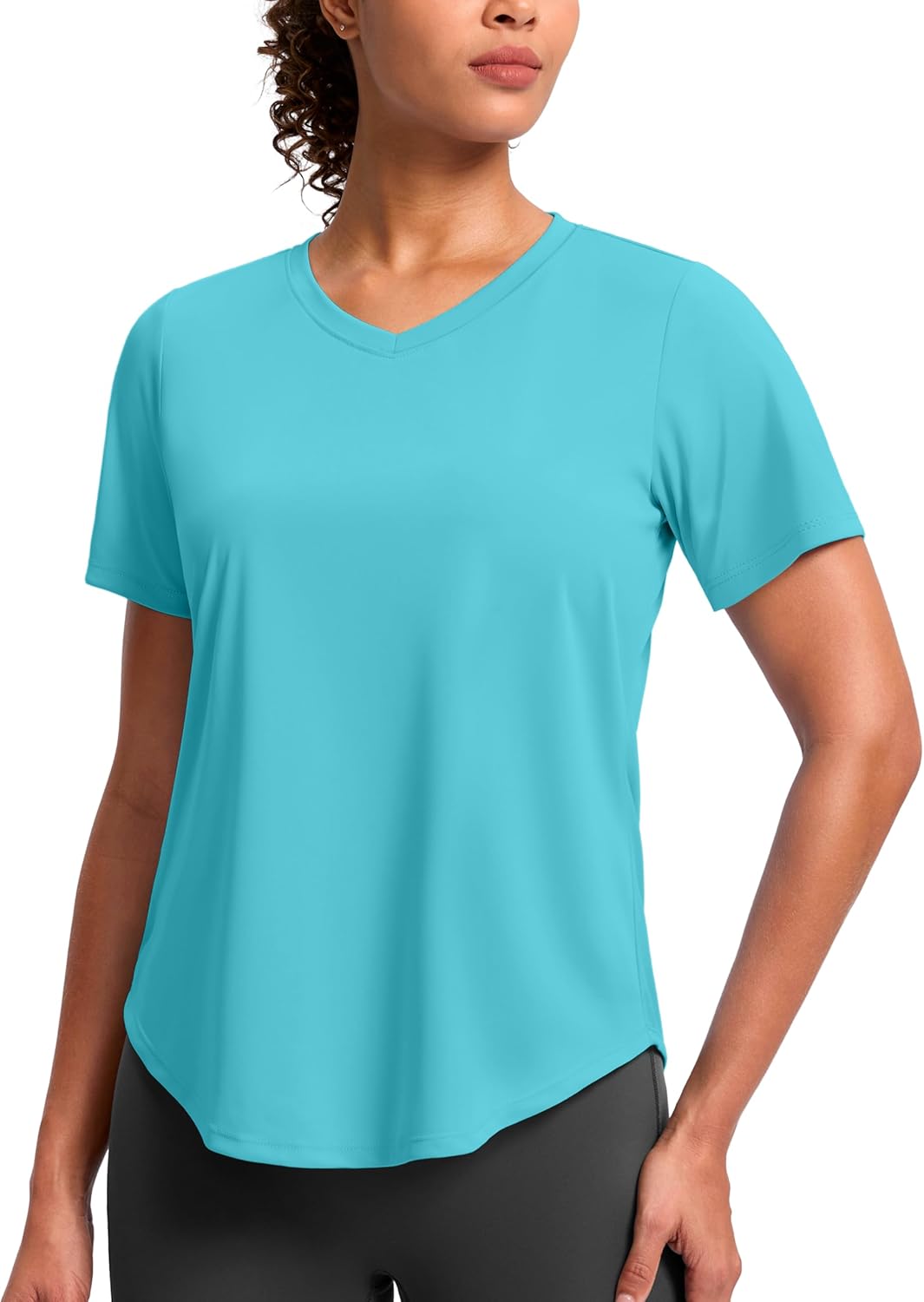 Womens Workout Tops V-Neck Short Sleeve UPF 50+ Sun Shirt Moisture Wicking Quick Dry Top for Gym, Running, Athletic