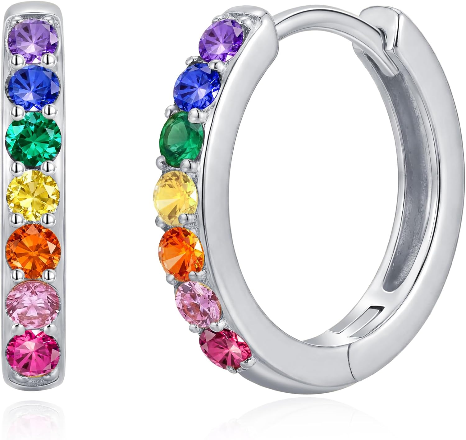 925 Sterling Silver Huggie Earrings for Women 14K Gold Plated Silver Hoop Earrings for Women Hypoallergenic Small Colourful Rainbow Cubic Zirconia Huggie Earring (12/14/16MM)