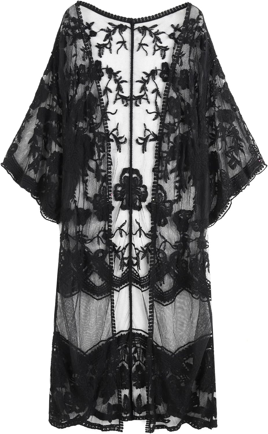 Romanstii Women's Lace Cardigan Floral Crochet Sheer Beach Cover Ups Long Kimono