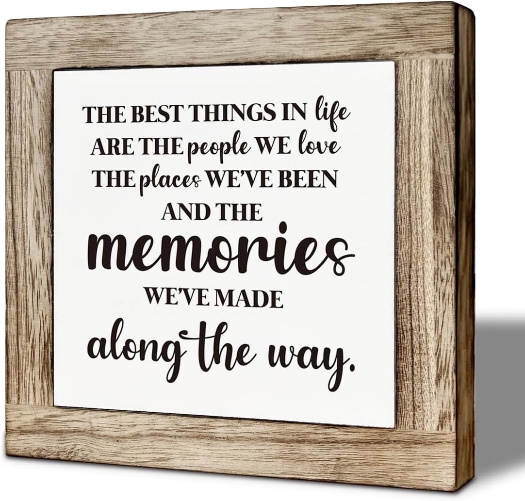 Family Signs, Rustic Home Decor for Shelves, Family Room Decors, Farmhouse Wooden Table Sign, Meaningful Gift for Friends Families, The Best Things in Life are the People We Love Sign 5.9×5.9 inches