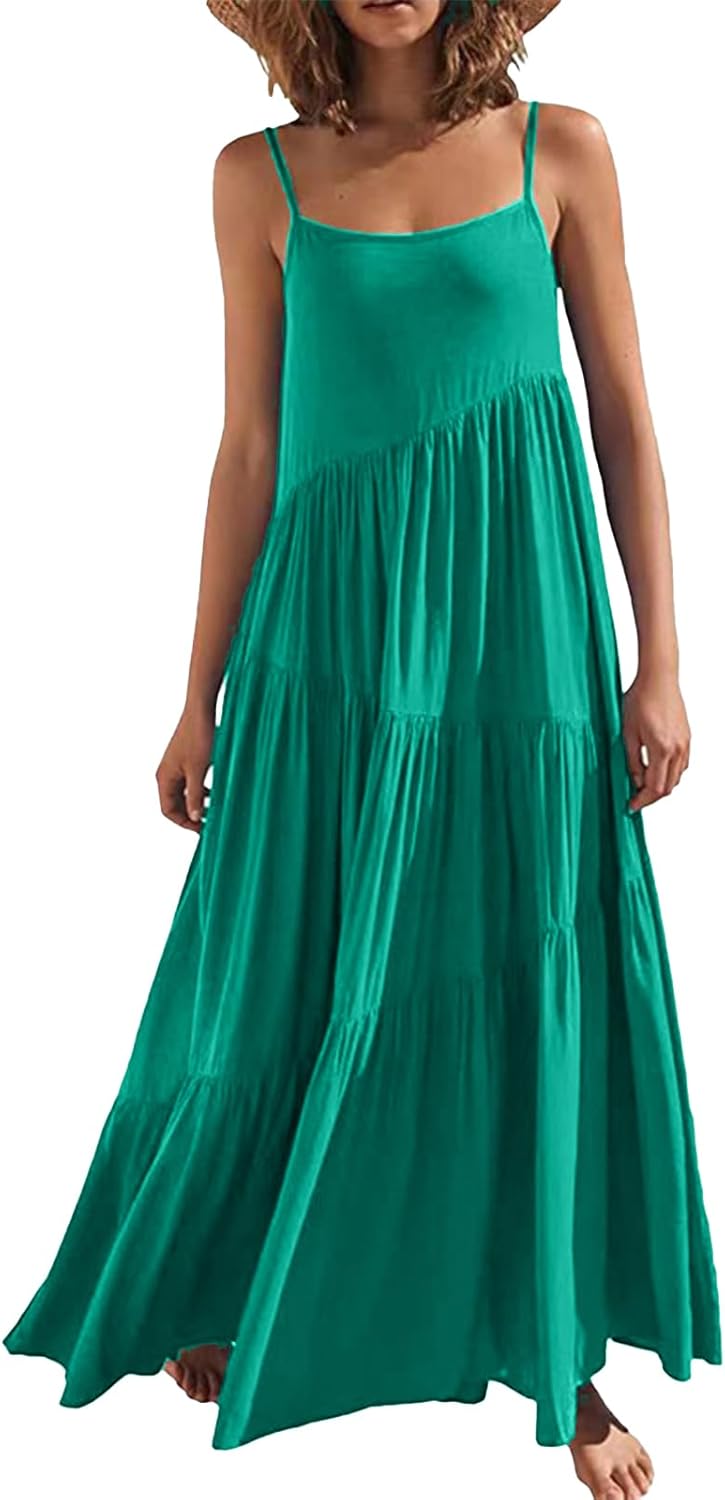Women Summer Spaghetti Strap Sleeveless Casual Flowy Beach Vacation 2025 Maxi Dress