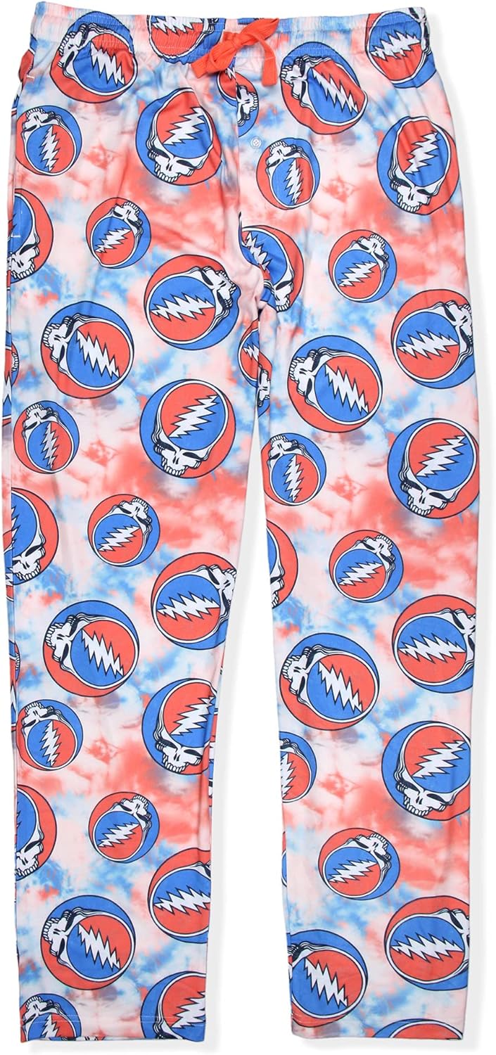 Bioworld Grateful Dead Men's Allover Steal Your Face Logo Tie Dye Adult Sleep Bottoms Pajama Pants