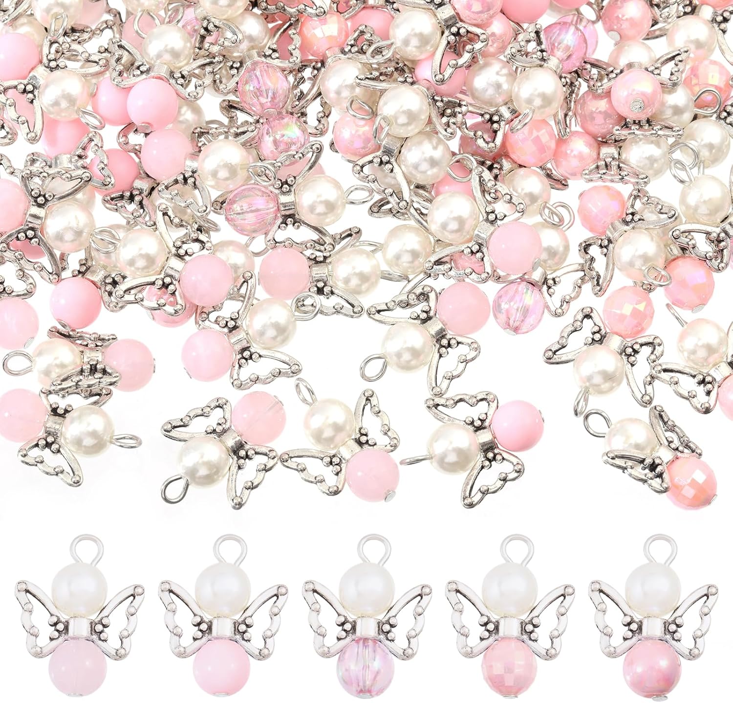 CHGCRAFT Angel Wing Charms Angel Pendant Beads Acrylic Alloy Pendant with Iron Findings Round Antique Silver Platinum Decorations for DIY Jewelry Making Necklace Keychain Crafts