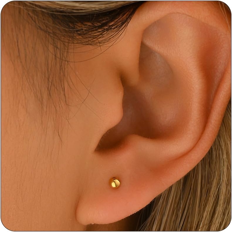 Gold Studs Earrings for Women 18K Gold Plated 2mm 3mm 4mm 5mm Ball Earrings Simple Stainless Steel Hypoallergenic Round Ball Studs Earring Jewelry