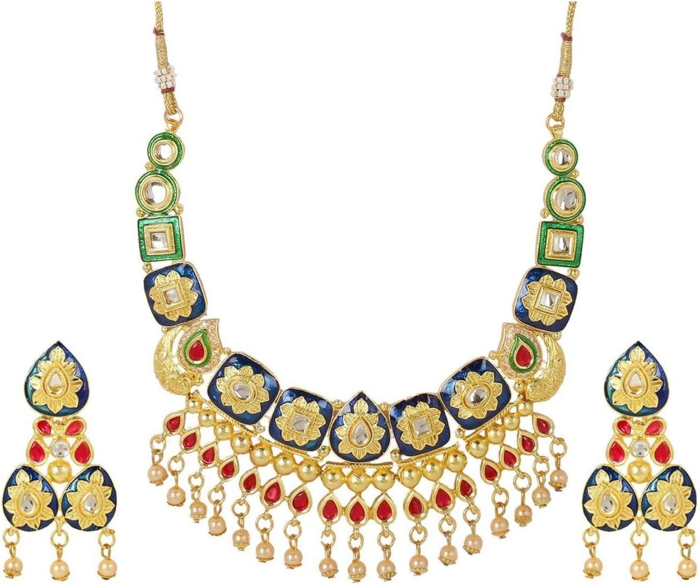 Efulgenz Meenakari Choker Set Bollywood Indian Jewelry Set Antique Choker Crystal Faux Pearl Tassel Necklace Dangle Earrings Jewelry Set for Women