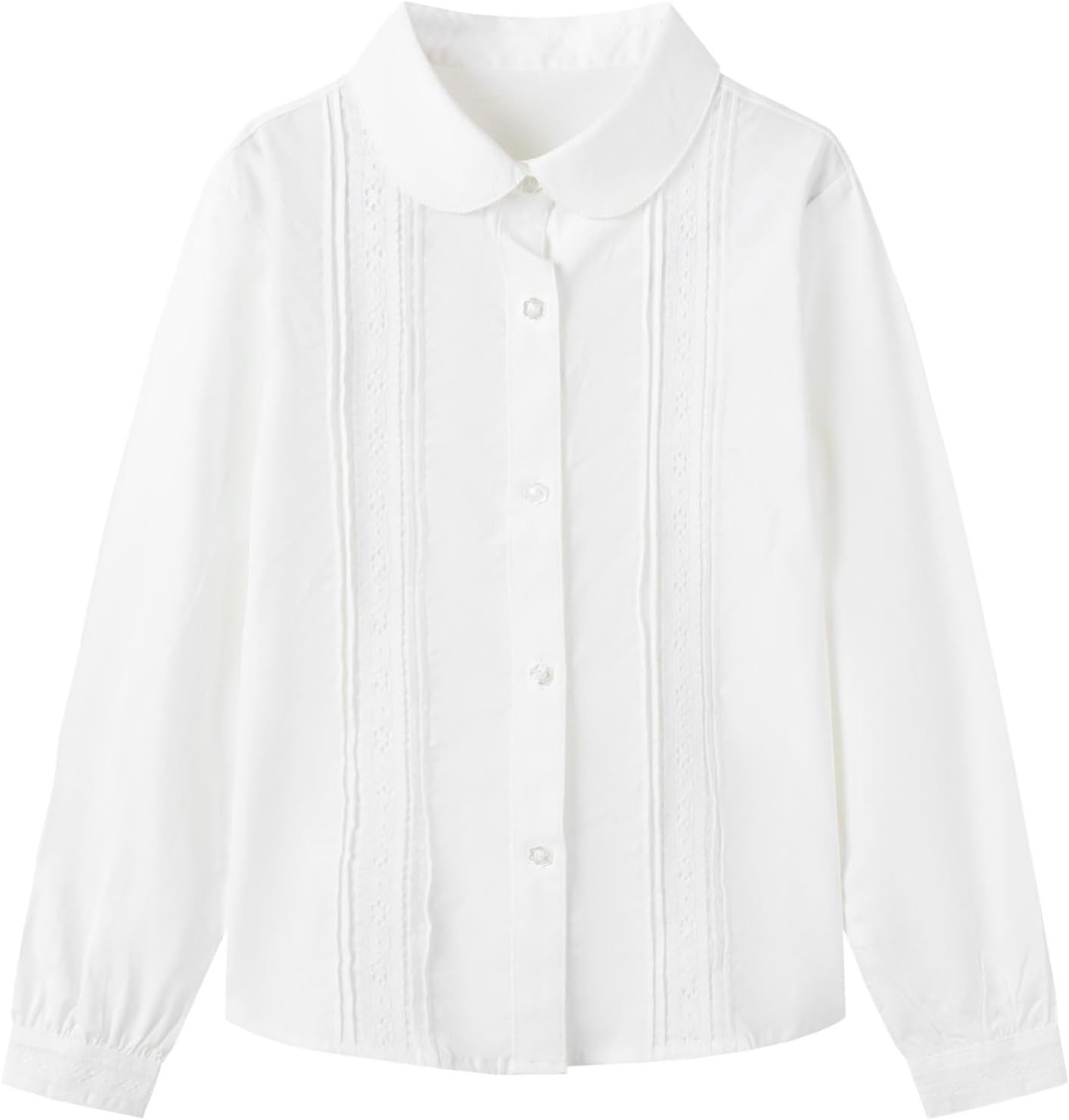 eton kidd Girls Lace Trim Long Sleeve Blouse with Plum Blossom Buttons Club Collar Tailored Silhouette