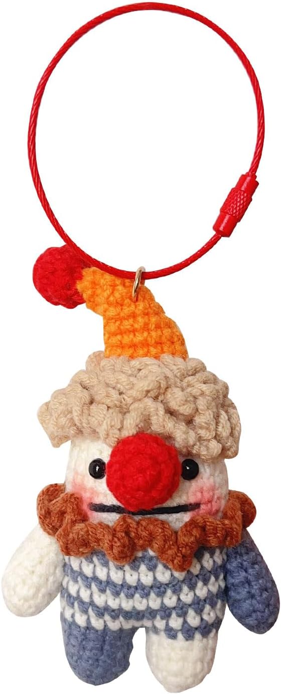 Novelty Weird Clown Doll Keychain Handmade Crocheted Clown Doll Backpack Car Charms Easter Halloween Gifts (Colorful Clown Pendant)