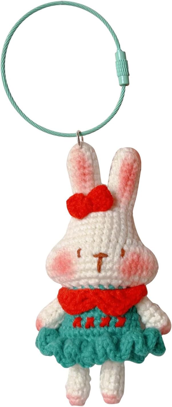 Flower Dress Bunny Keychain Hanging Handmade Crochet Pendant exotic animals Backpack Handbag Charm Car Cartoon Gifts for Women