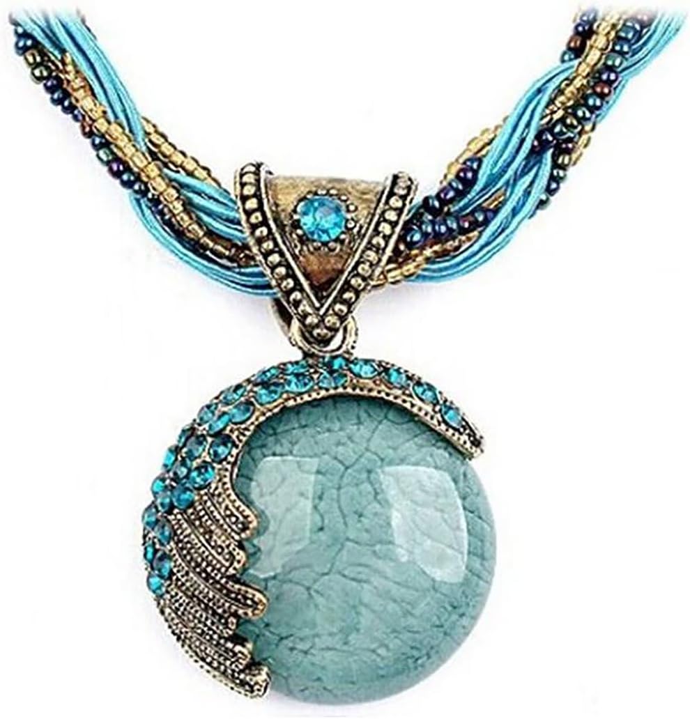 GYRMMUE Rhinestone Collar Chain Necklace Collar Chain Necklace Turquoise Pendant for Women Multilayer Beads Chain Jewellery Handmade Vintage Bohemian Style Necklace Necklace Round Pendant Necklace