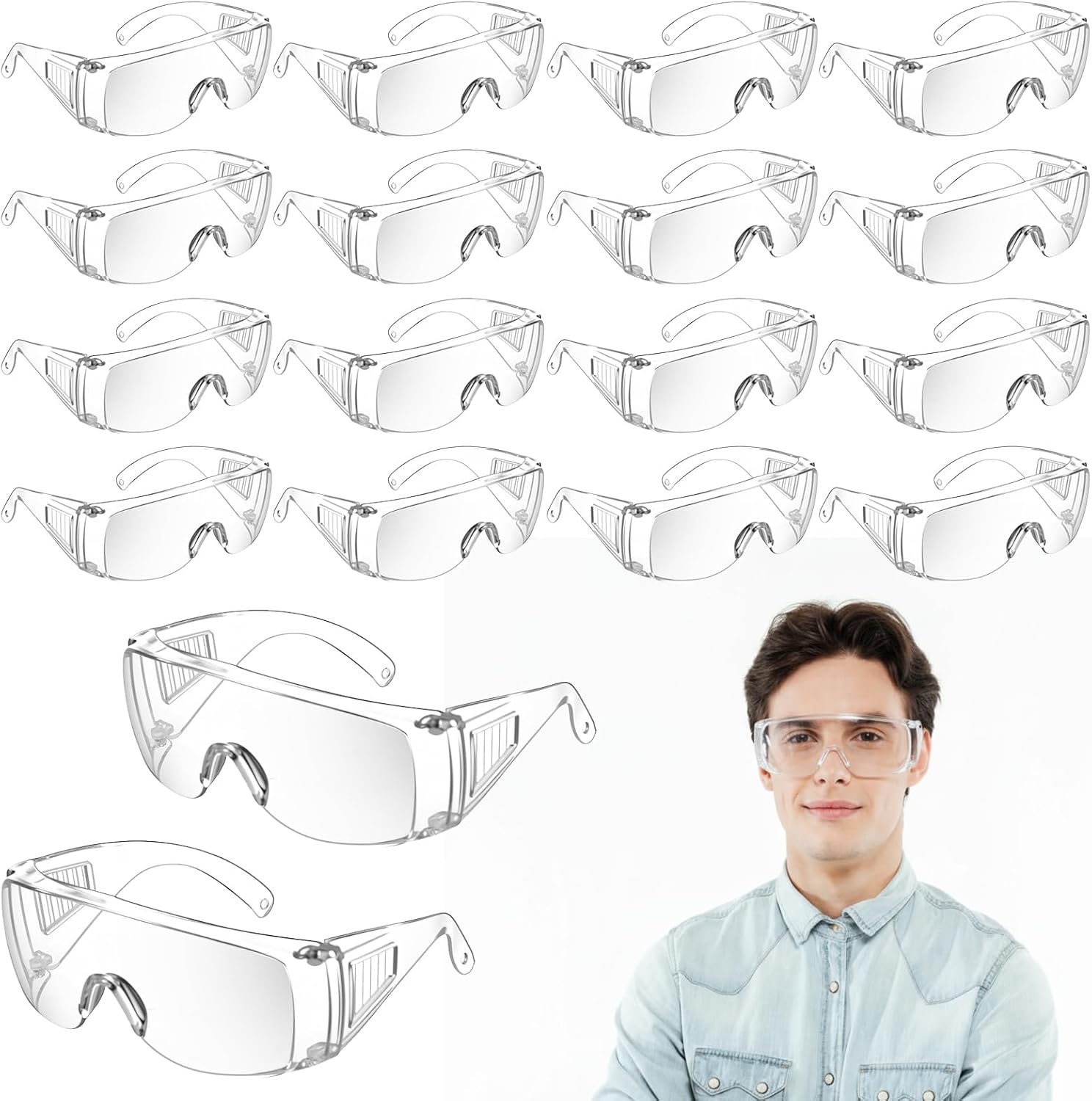 20Pcs Bulk Clear Safety Glasses, Over Eyeglasses, Lightweight Protective Eyewear, Safety Goggles Eye Protection, Certified Wrap-Around Eye Protection for Lab, Construction, Nurses,