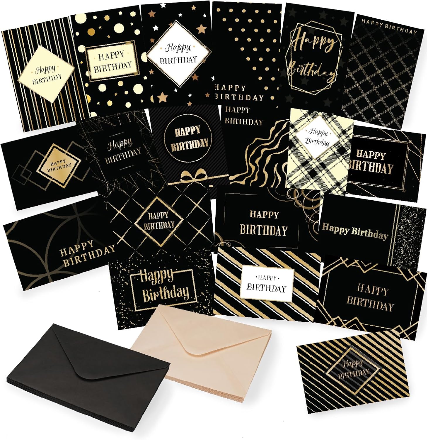 Mr. Pen- Birthday Cards with Envelopes, 20 Pack, 4" x 6", Black with Gold Foil, Blank Inside, Greeting Cards Birthday
