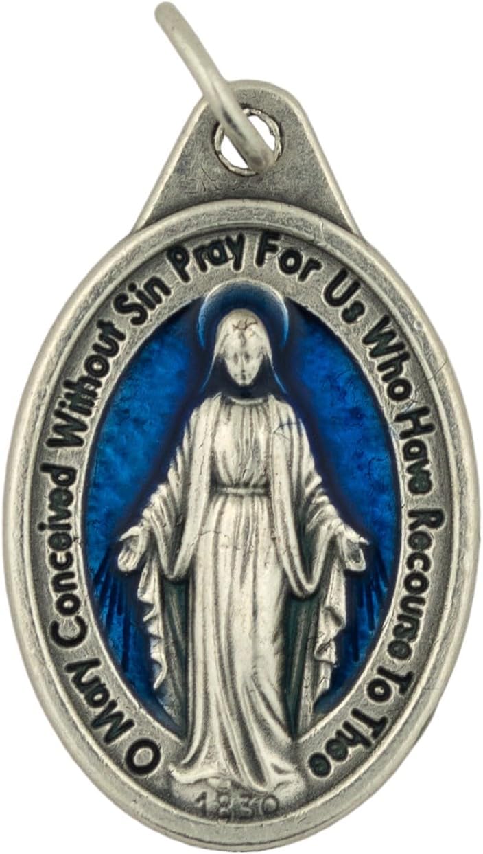 VILLAGE GIFT IMPORTERS Wonderful Silver-tone and Blue Miraculous Medal with Card | Handcrafted by Italian Craftsman | Attach this beautiful pendant to a chain | Beautiful Christian Charm