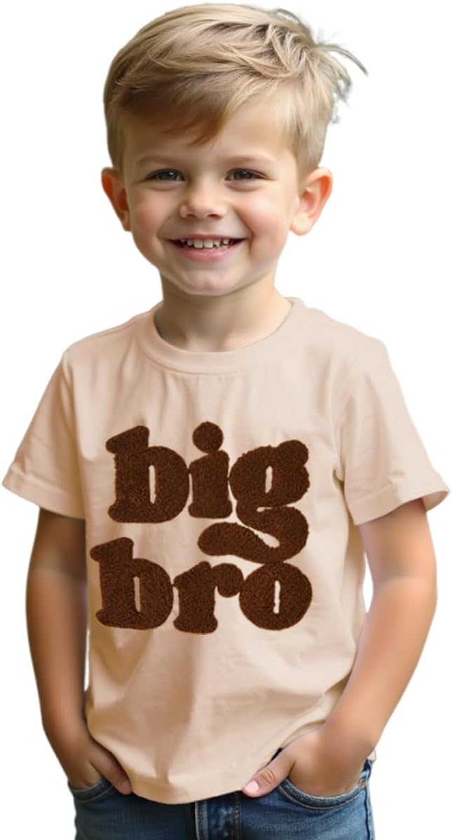 Big Brother Shirts for Toddler Baby Boy Big Bro Chenille Patch T-Shirt Big Brother Announcement Short Sleeve Tee Tops
