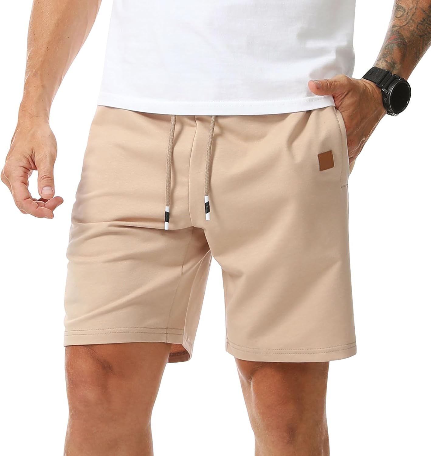 Surenow Men's Jogger Shorts Athletic Workout Shorts Drawstring Casual Lightweight Short for Men with Zipper Pockets