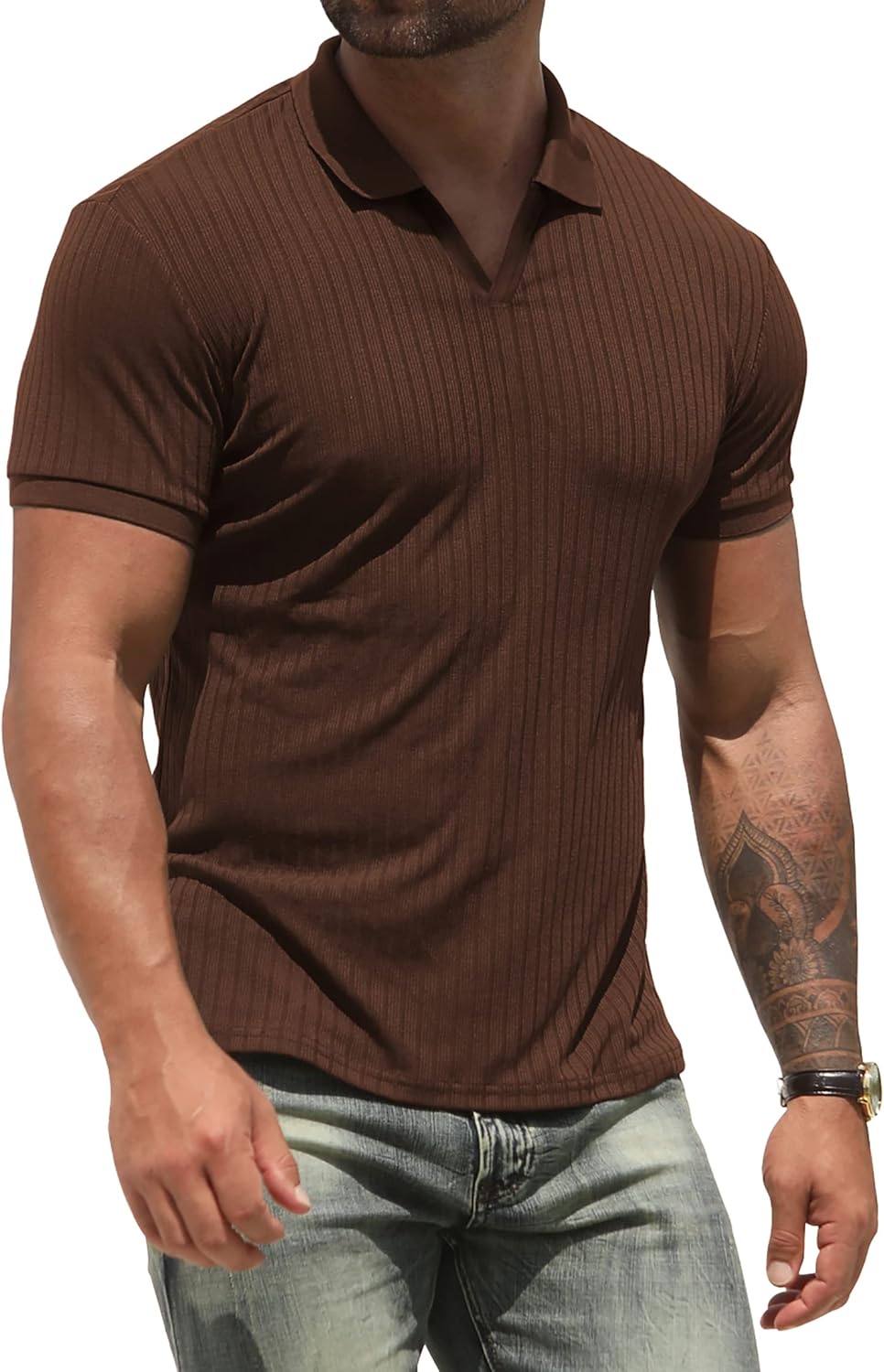 NITAGUT Polo Shirts for Men V Neck Slim Fit Short Sleeve Performance Golf Shirt Knit Soft Tees