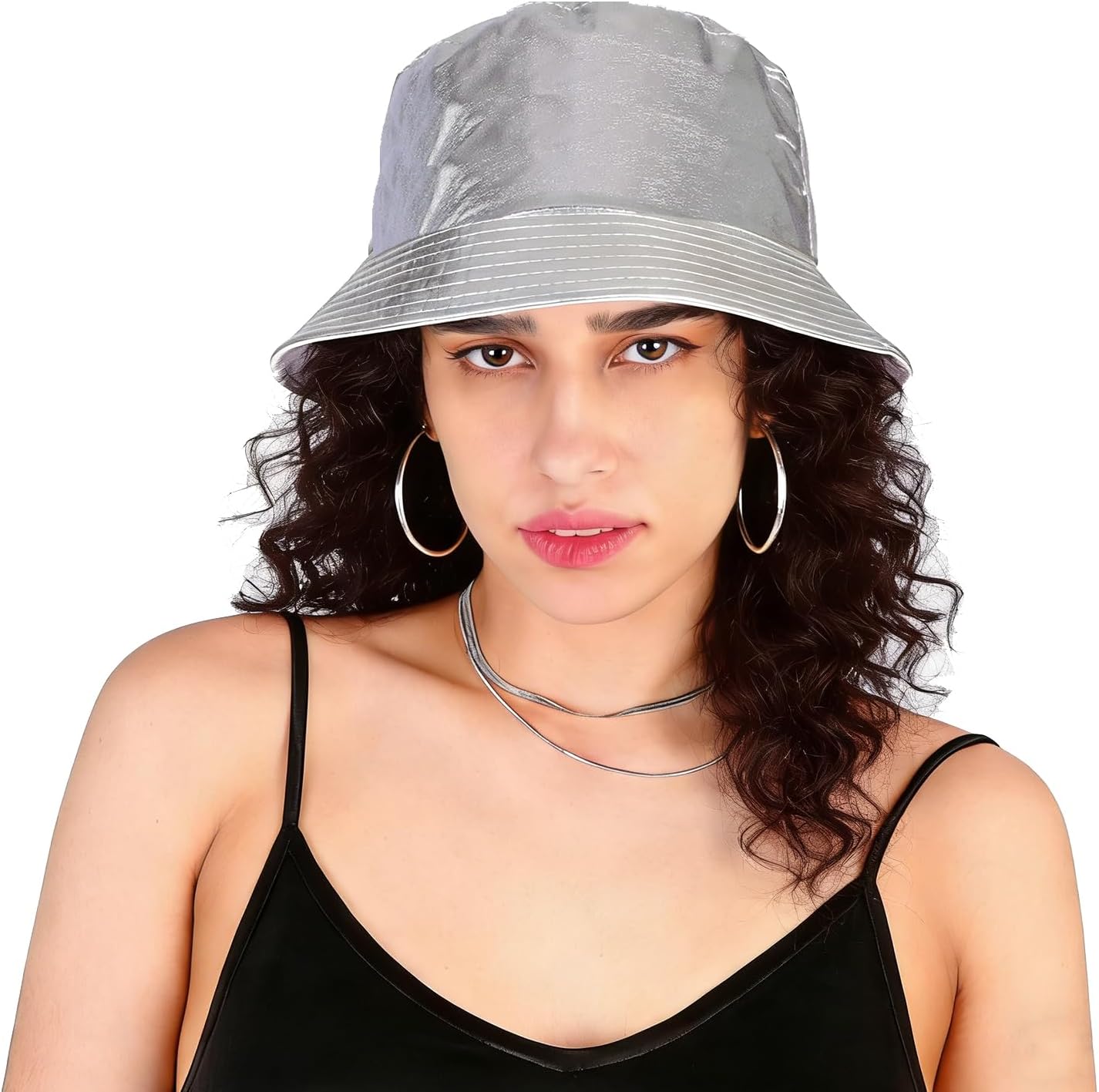 MILAKOO Rock Metallic Bucket Hat Reversible Cap Unisex Fisherman Wide Brim Rock Punk Hippie Hat