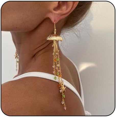 Starfish Tassel Dangle Earrings for Women Jellyfish Earrings Beach Long Dangle Drop Earring Summer Charm Earrings Ocean-Themed Dangling Earring Boho Beach Jewelry
