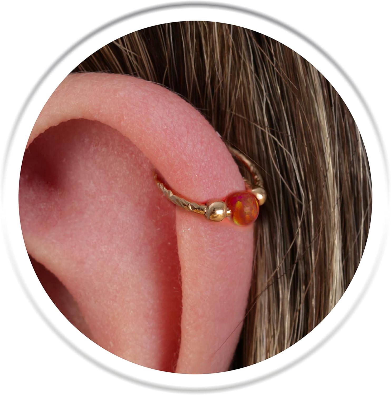 Hammered Gold Helix Rings 20G + Opals + Plain